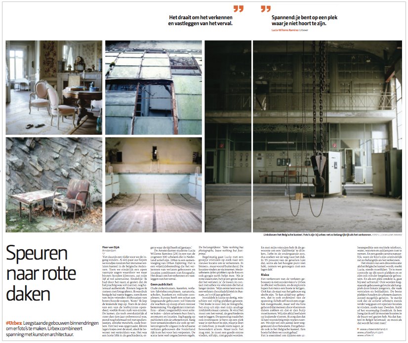 – De Pers, an article about urbex photography by Floor van Dijck, ‘Speuren naar rotte daken’. Selection of photos, 10th of November 2011.