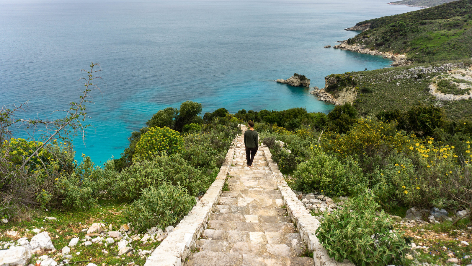 Strolling along the Albanian coastline near Ksamil.