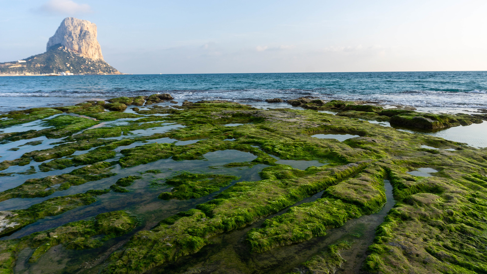 The natural parc of the Peñon d’Ifach in Calp, Spain. This 332 meter high limestone outcrop emerging from the sea is home to numerous rare plants and over 300 species of animals, and a nesting site for colonies of sea birds and other birds.